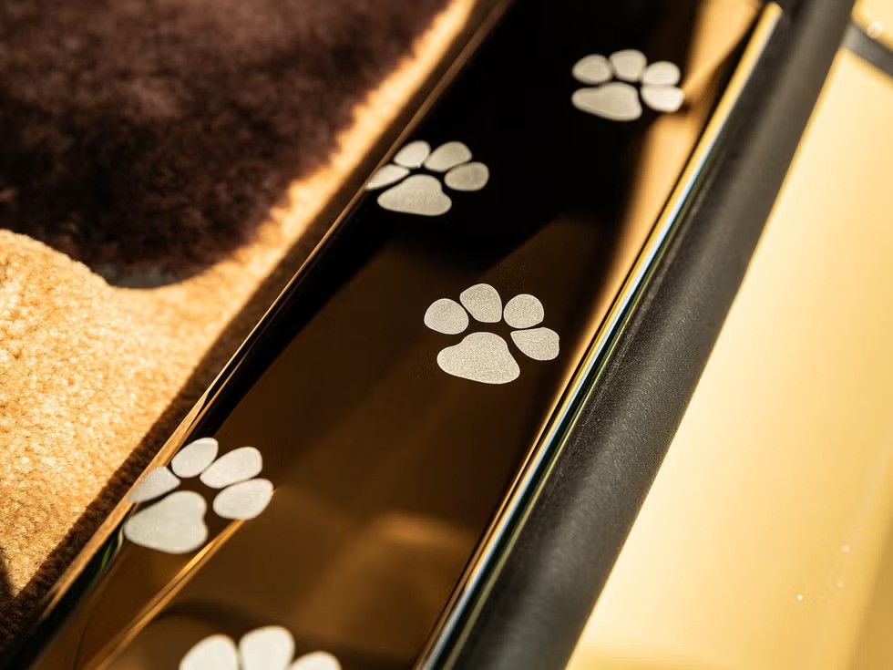 در داشبورد نیز یک طرح کوچک از ردپای پنجه‌ها دیده می‌شود و این نقش‌ها روی نوارهای رکاب درها هم تکرار شده‌اند. البته ما هم روی صندلی‌های ماشین‌مان رد پای سگ داریم، پس به نوعی ما هم لوکس هستیم! 🐾